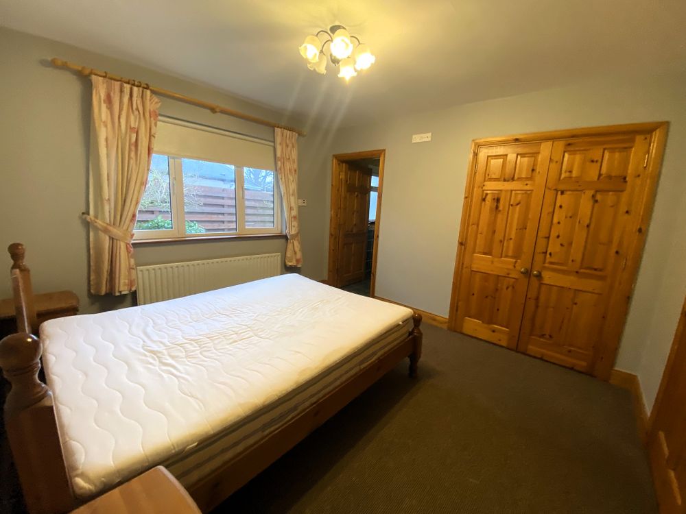 Double bedroom with built in wardrobe , carpet flooring, roller blind, curtain pole and light fitting